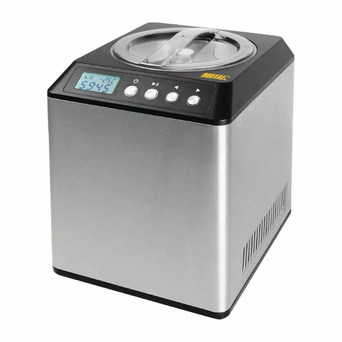 Produce great quality ice cream and frozen yoghurt quickly with the Buffalo 2Ltr professional ice cream maker. Fitted with a built-in freezer, there’s no need to pre-freeze the bowl, meaning you save prep time and precious freezer space. Once you’ve added the mixture, the machine can make up to two litres of deliciously indulgent ice cream every 30 minutes. It’s also incredibly easy to use and maintain, thanks to digital controls and easy-clean stainless steel construction.