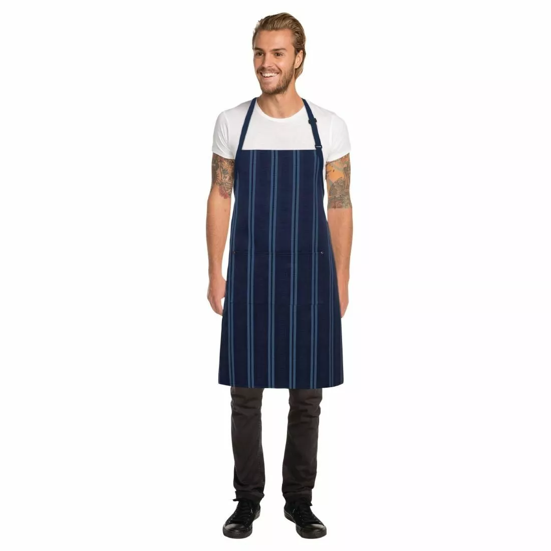This tone-on-tone coloured satin stripe bib apron is made from 65% cotton /35% polyester fabric providing you with a uniform that is as comfortable as it is strong. The riveted pocket ends and reinforced stress points add durability while the double front pockets and adjustable neck closure combine for extra functionality.