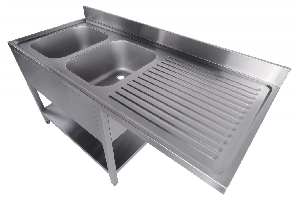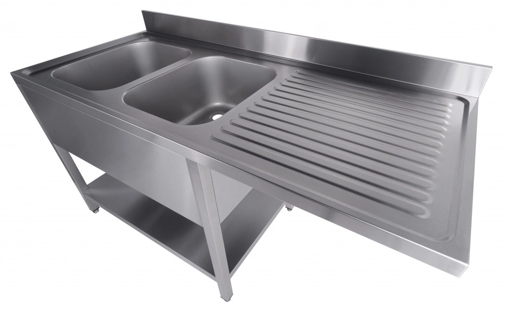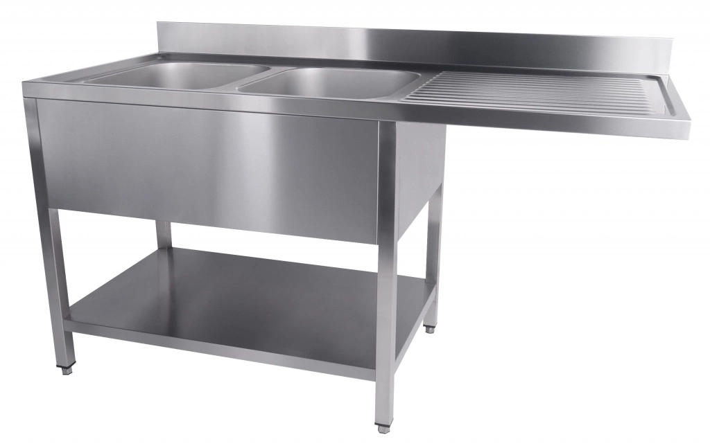 This top quality Combisteel 1600mm wide double bowl sink with right hand drainer with space to put a dishwasher under, is designed to give outstanding performance day after day in all busy restaurant and catering establishments, or for anyone needing a great value, high quality double bowl dishwasher sink.