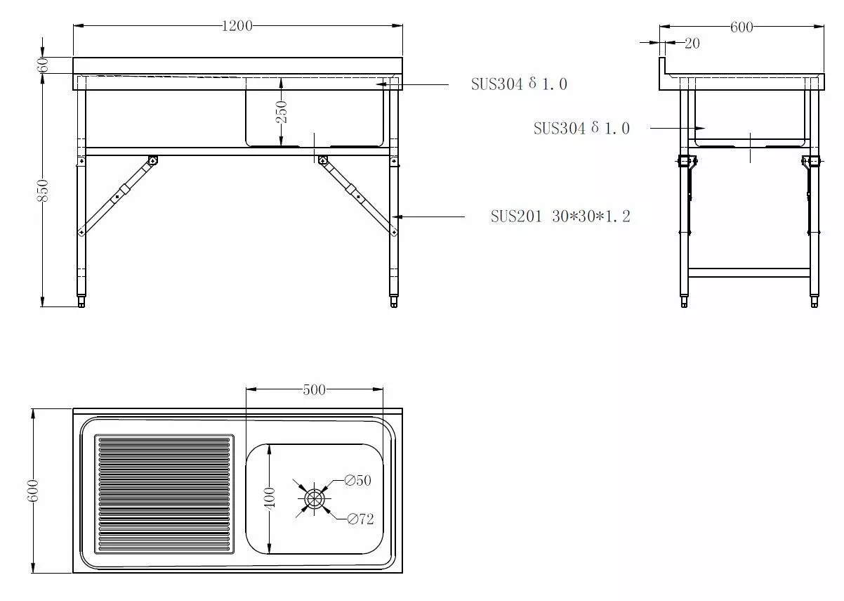 - Dimensions – 1200(W) x 600(D) x 910(H)mm
