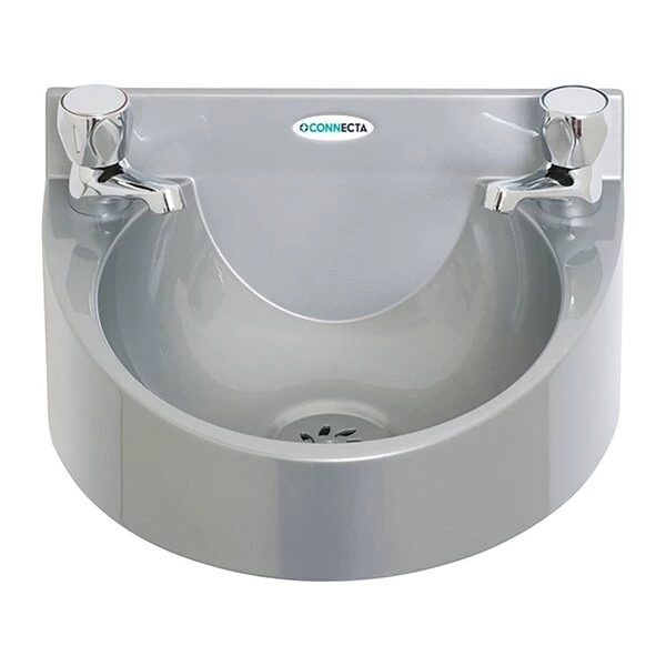 Hygienic and super strong ABS wash hand basin with dome headed basin taps. With embedded Sanitru anti-microbial additive.
