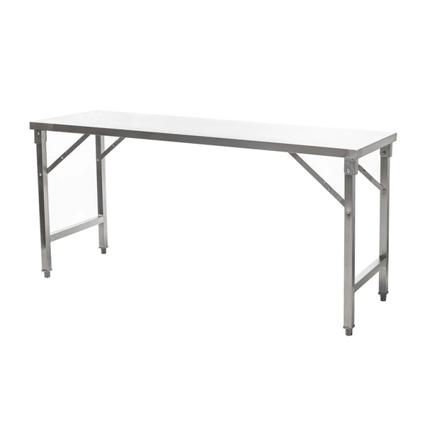 Connecta folding tables are manufactured from high-quality stainless steel. They are ideal for providing temporary additional worktop space or for catering outdoors. They are quick and easy to put up and, when folded down, minimum storage space is required. Please note: Supplied flat-packed, for simple self-assembly.