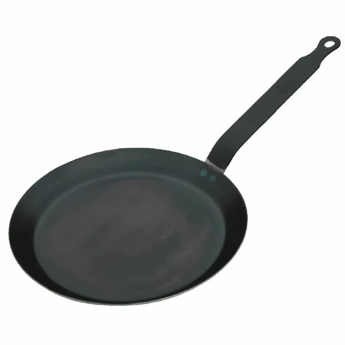 The De Buyer Black Iron Crepe Pan is a heavy duty, professional quality black iron crepe pan which is suitable for all heating surfaces excluding induction hobs. The highly durable 2mm surface ensures optimal, even heat diffusion across the crepe, so you can achieve perfect crepes every time. The pan requires seasoning to ensure optimum cooking results and a prolonged life.