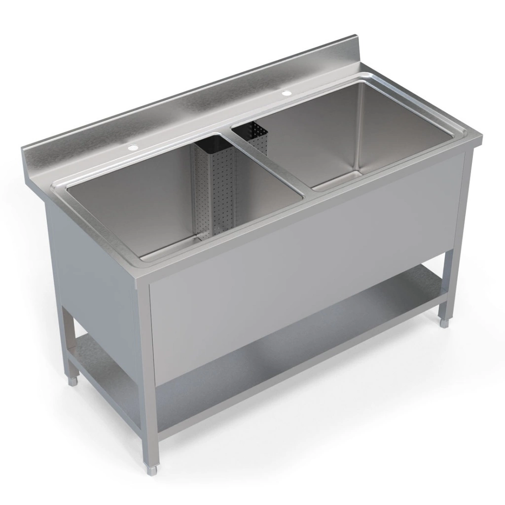 Combisteel Fold Down Mobile Stainless Steel Double Bowl Sink 1800mm – 7490.0280
