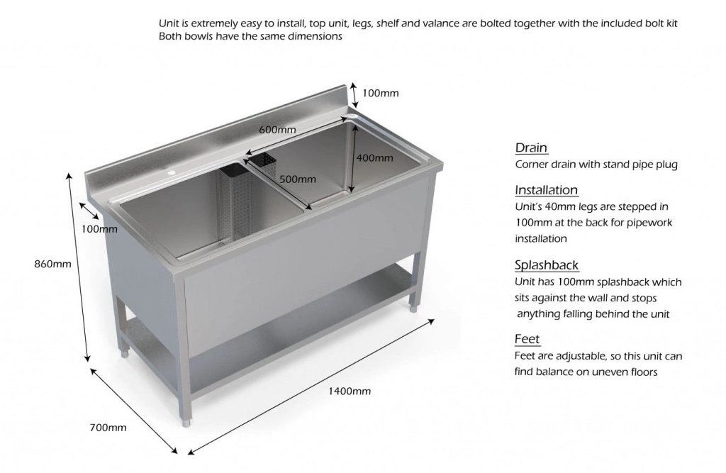- Sink Dimensions (MM):Â Â Â 1400 x 700 x 860