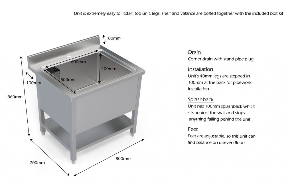 - Sink Dimensions (MM): 800 x 700 x 860 (W x D x H)