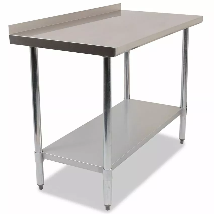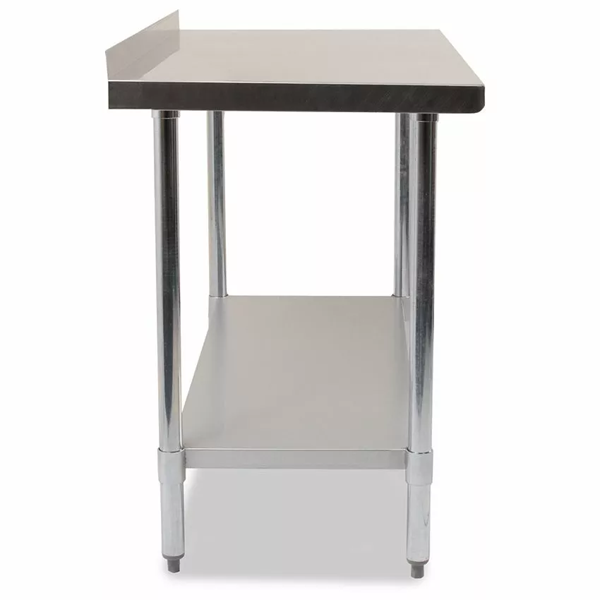 This Empire commercial stainless steel table with upstand is the perfect choice for any busy kitchen. The table is made from high-quality stainless steel, which is durable, easy to clean, and resistant to corrosion. The smooth surface is perfect for preparing and storing ingredients, and the upstand provides a convenient place to store utensils, towels, and other kitchen essentials. The upstand also helps to keep spills and crumbs contained, making it easier to keep your kitchen clean and organised and making them ideal for installation against the wall. The included under shelf gives extra off the floor space for equipment or storing ingredients. The table’s sturdy construction ensures it can handle heavy loads, and the adjustable feet provide added stability. Whether you need a workstation for prepping meals or a place to store equipment and supplies, this commercial stainless steel table with backsplash is sure to meet your needs.