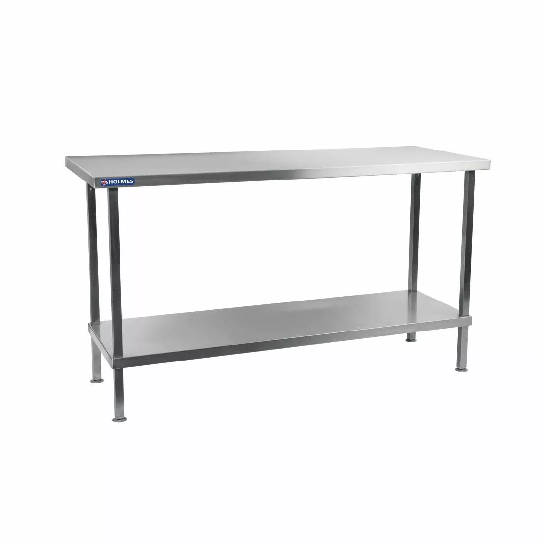 British company Holmes have been producing kitchen tables of excellence in York for decades and this is one of the largest. Offering a sizeable 1800mm x 65mm work surface and equally large undershelf, this centre table is a fantastic British product for any kitchen wanting the ultimate preparation and storage area. Delivered fully assembled, ensure you have sufficient access for this supremely high quality stainless steel table. Finished with adjustable metal feet.