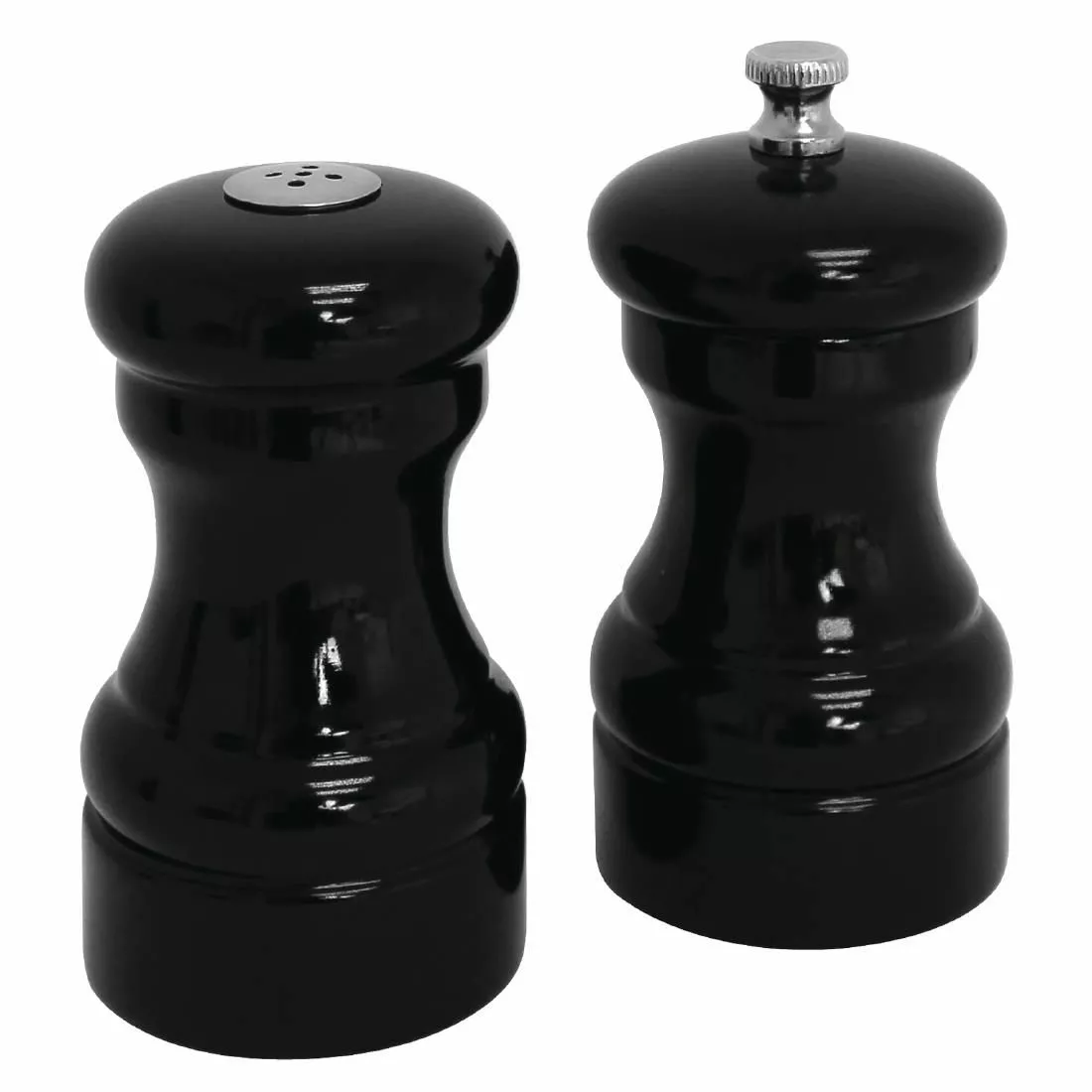 Complete your table settings with these attractive mill and shaker sets. Featuring a black glossy finish and sleek modern design, they will suit all decor and provide customers with the option to add extra seasoning to their meals. The durable ceramic mechanism is conveniently adjustable allowing you to produce both coarse and fine grinding.