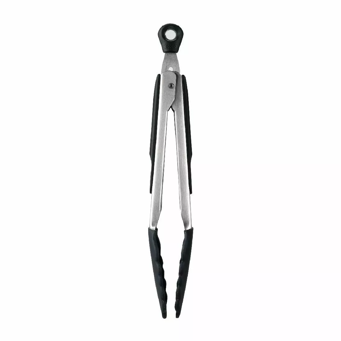 Effortlessly prepare food with the OXO Good Grips 9″ locking tongs. Boasting non-slip grips and a thumb rest, the food tongs give you complete control when in use, allowing you to lift, flip and serve food with ease. Heat resistant up to 310°C/600°F, the non-stick silicone heads are able to work at intense temperatures without breaking or warping. The heads are also kind to non-stick cookware, helping you keep your equipment in superb condition. A convenient lock allows you to easily store the tongs in any drawers in your kitchen.