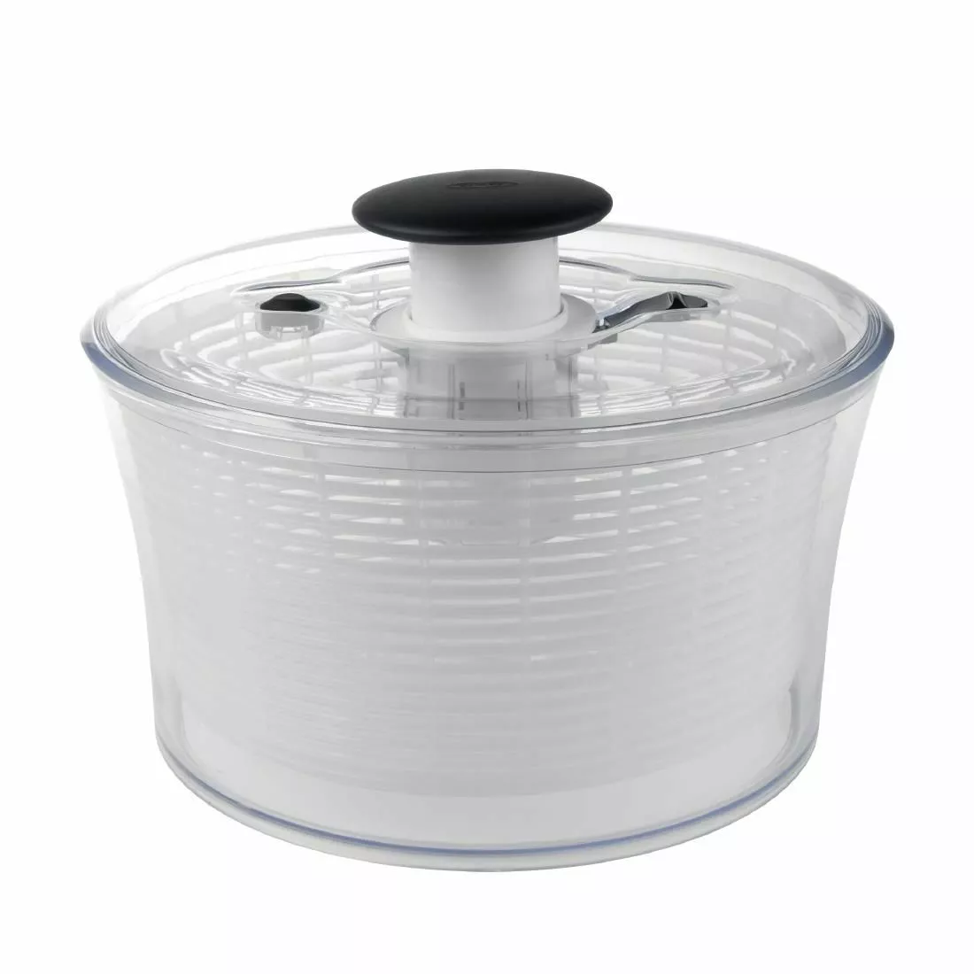 Ideal for drying salad in small quantities, the OXO Good Grips 2.8 litre salad and herb spinner is the key to a more efficient and effective food preparation. Featuring a patented pump system, this salad dryer effortlessly spins your leafy greens with the press of a knob, helping you dry salad quickly and easily to speed up your preparation times. An innovative brake stops the basket when required, helping you unload the bowl as soon as your salad is prepared. Designed with a non-slip ring, the salad spinner also stays fixed in position when in use, ensuring a smoother overall operation.