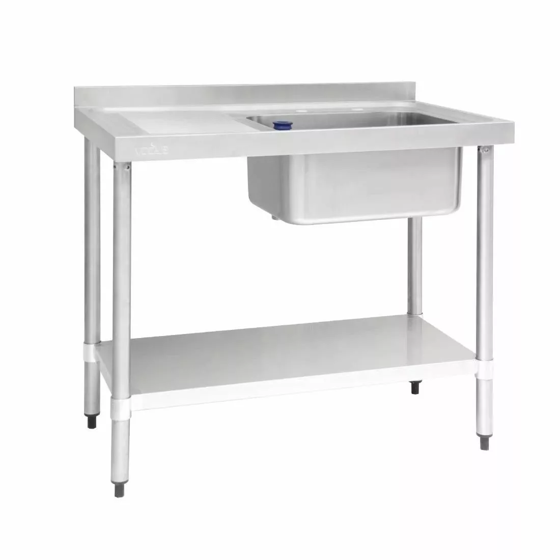 Ensure your washing areas are durable, hygienic and practical with this 1000mm wide commercial sink unit from Vogue. Features a stainless steel construction that is highly durable and easy to clean, making it ideal for use in any commercial kitchen. A galvanised steel under shelf helps you to make the most of your kitchen space, adding extra storage space for cookware, cleaning chemicals and any other products.