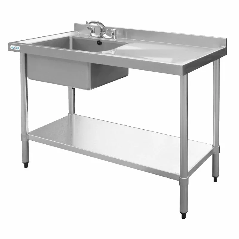 Provide practical and hygienic washing areas in your kitchens, with this left hand bowl sink from Vogue. This 1200mm wide commercial sink unit is made from a stainless steel material with a galvanised steel under shelf – making it highly durable and easy to clean, ideal for any busy commercial kitchens.