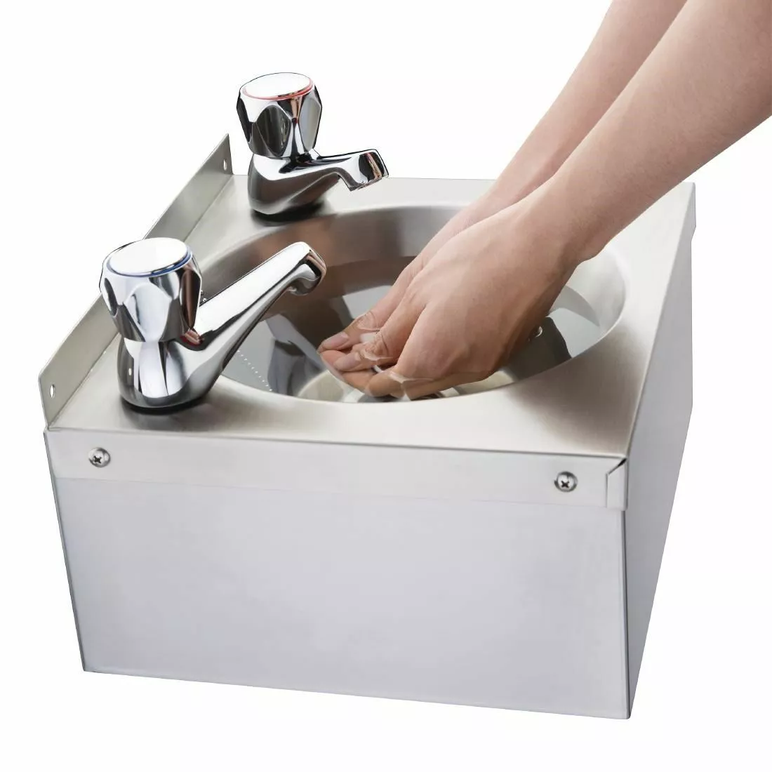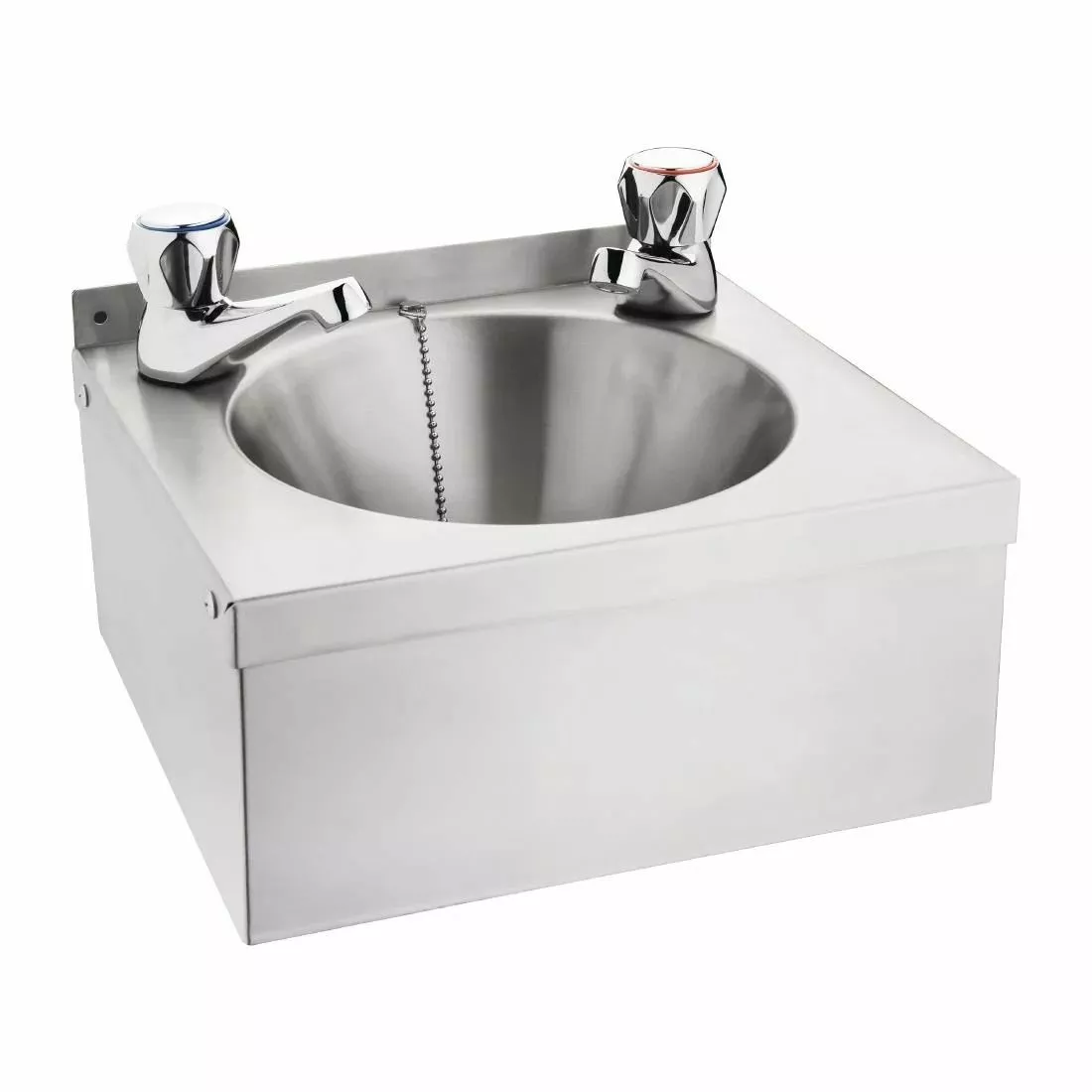 This mini hand wash basin from Vogue is made from extremely strong and hygienic 304 stainless steel, supplied with plug, chain, apron support and waste for easy installation and use. The sink can be fixed to a wall to create practical hand wash stations in kitchens and other important catering environments.