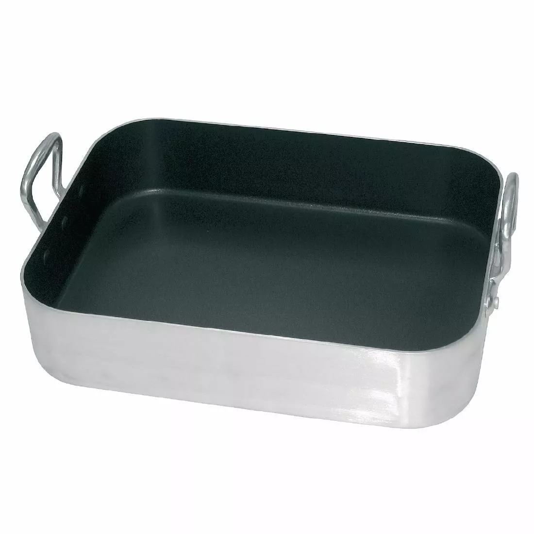 The standard non-stick roasting pan from Vogue is an aluminium pan with Teflon non-stick coating, perfect for roasting anything from vegetables to joints of meat. The non-stick coating makes maintaining and cleaning the pan quick and easy. Complete with riveted handles, this versatile roasting pan is perfect for a range of tasks and is remarkably durable.